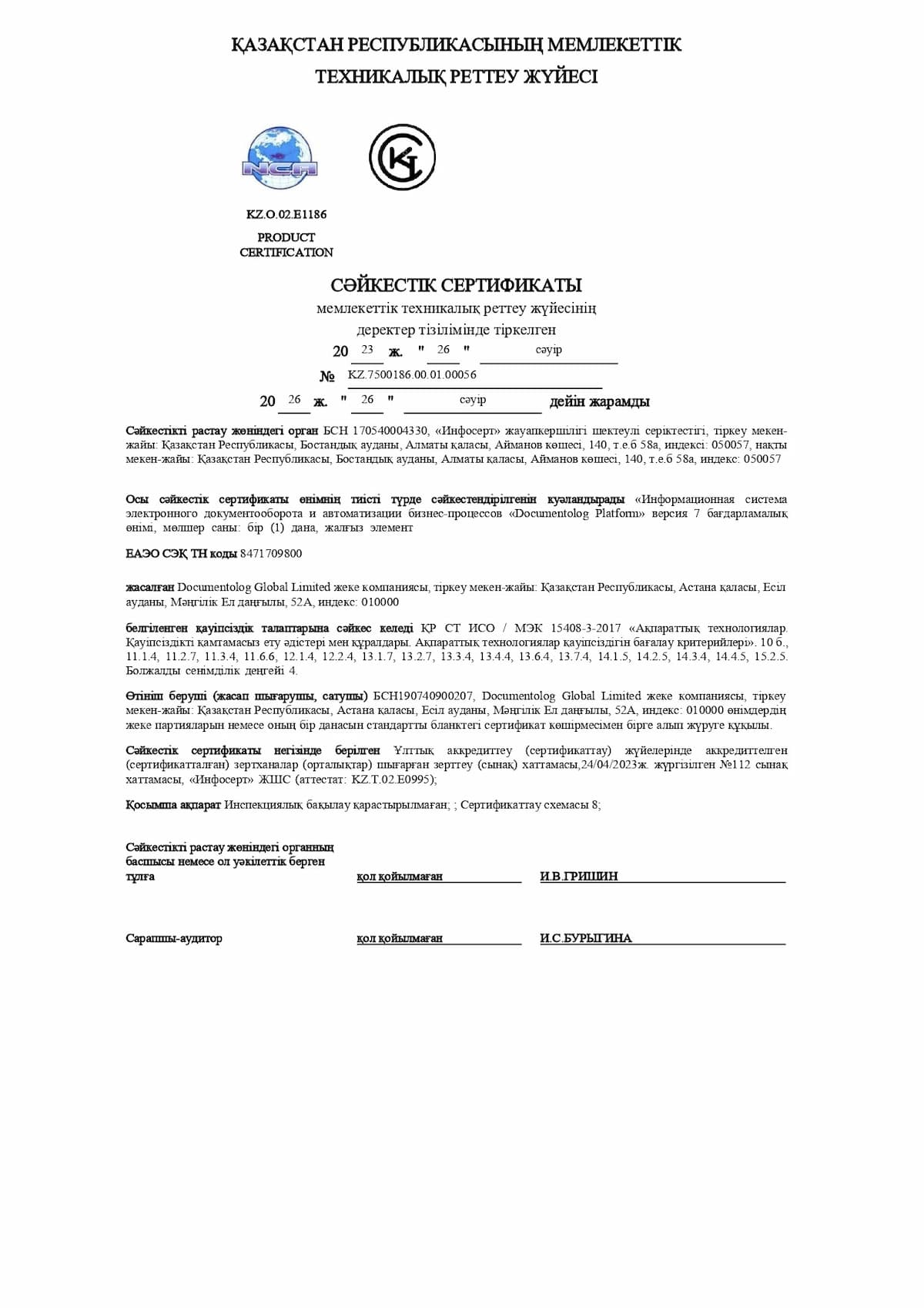 Во-первых, система Documentolog имеет сертификат соответствия требованиям безопасности, установленным в СТ РК/ISO – 15408 с 4 уровнем доверия. Это означает, что программное обеспечение было проверено анализатором кода и специалистами на соответствие международным требованиям по обеспечению информационной безопасности. Простыми словами, это официальный документ, который гарантирует, что доверять нам автоматизацию своих процессов можно и это безопасно.